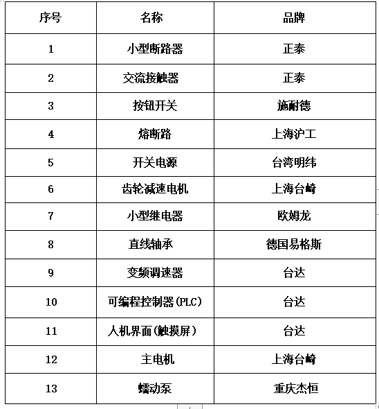 设备技术参数及主要配置: